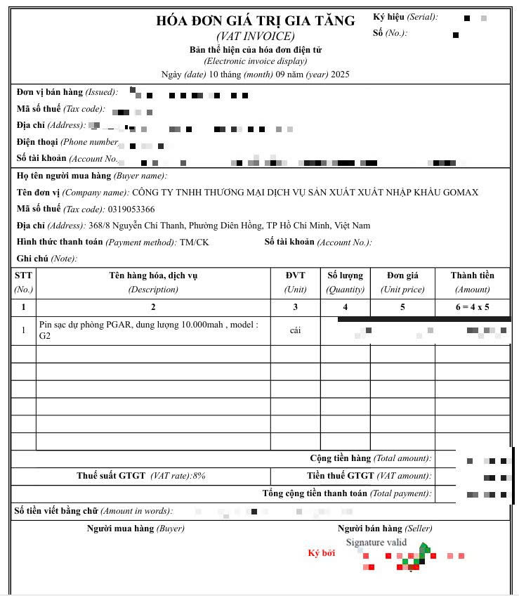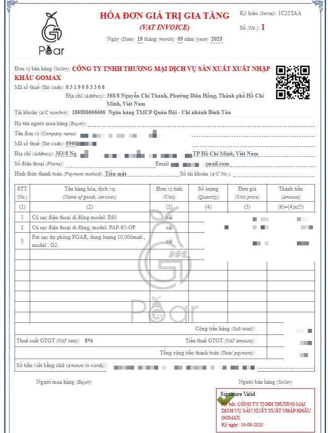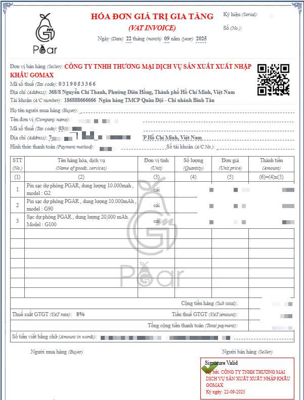 MUA HÀNG TẠI CÔNG TY GOMAX – HÓA ĐƠN VAT ĐẦY ĐỦ